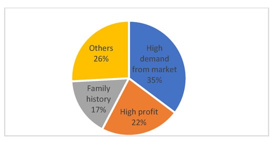 In another work, Islam et al. [45] showed that women and children are mostly reared in smallholder farms with 2–5 heads. In rural areas, nearly three-fourths of goats were reared with mostly natural grass and tree leaves. Furthermore, Siddiky [46] pointed out that the value chain of goats in Bangladesh was traditional and had poorly organized marketing channels from production to consumption, with many middle actors such as collectors, traders, and butchers. Chowdhury et al. [44] evaluated the socio-economic aspects of goat farmers and showed that goat farmers were middle-aged with a low level of education and high years of experience and women were involved in decision-making of goat production and marketing. Research by Sarker et al. [47] reported the domestic distribution channel of goats in Bangladesh with a lot of collectors, traders, and butchers. The income received by farmers varied and depended on the management procedure and selling time; hence, the economic benefit received by farmers was positive but quite low.