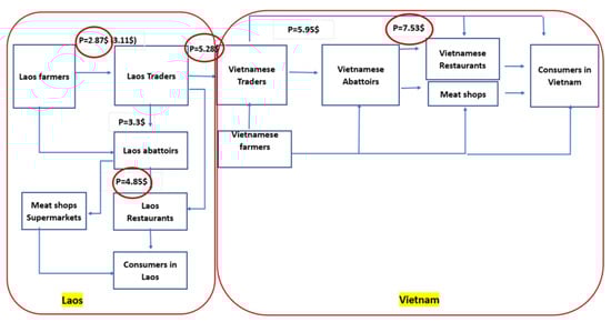 In the past, Lao goats were purchased by Vietnamese traders on the shared border of Laos and Vietnam, but this has decreased due to Lao government regulations. This has tended to lower the price and make goats more affordable to Lao consumers [63]. Survey results showed that some Vietnamese traders traveled deep into Laos to buy goats for them to be sold in Vietnam. Many goats from remote districts were sold by traders on transport routes in Laos or taken into Vietnam to the larger centers, as shown by ADB [64].