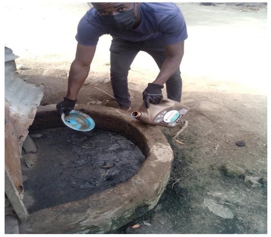 A total of 12 water samples were collected from various households with suitable sanitation facilities. Sampling was carried out in the household located in the centre of the village according to our pen-toss survey model. For physico-chemical analysis, samples were collected in labelled 5-litre containers and sent to the Water Chemistry Laboratory at the University of Lomé. Water samples were taken in 500 mL sterile glass vials, labelled and placed in an ice box containing cold accumulators before being sent to the laboratory for analysis.