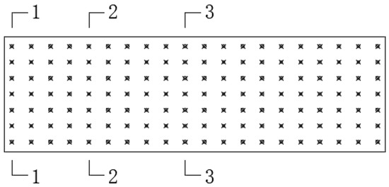 The mean and minimum peak pressure coefficients on the solar module, as depicted in Figure 4, Figure 5 and Figure 6, indicate distinct wind pressure distributions between the end and inner sections of the solar module when the wind direction is perpendicular to the roof ridge. In the following analysis, three sections, i.e., the end Section 1–1, the 1/4 Section 2–2, and the center Section 3–3, displayed in Figure 7, are selected to examine the impact of cornice at θ = 0°, where the length of cornice varies from 0 m to 1.6 m.