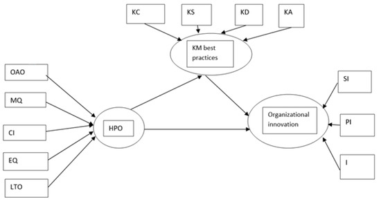 Taking into consideration the above-mentioned analysis regarding the relationships between HPO and KM best practices; KM best practices and organizational innovation, and HPOs and organizational innovation, the following research hypothesis arises: