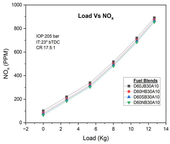 NOx with Engine load for the developed biodiesel blends.