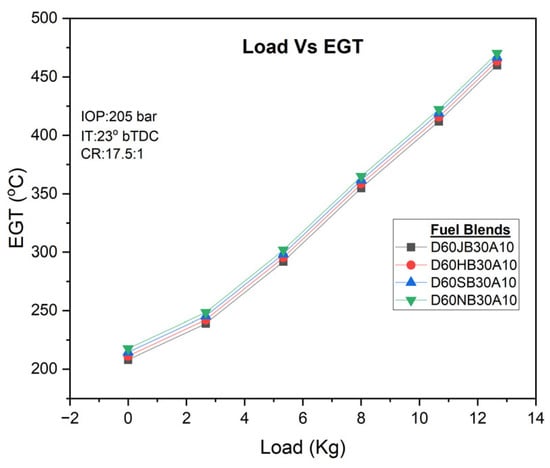 EGT with Engine load for the developed biodiesel blends.