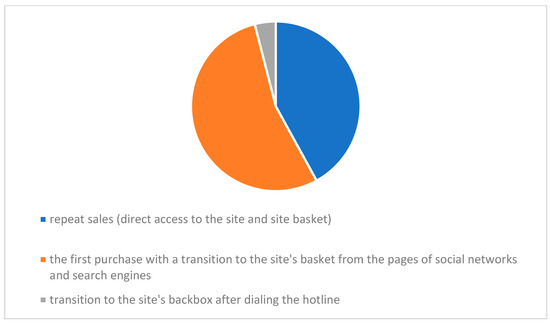 Figure 3 shows the sales statistics for the period 2021 in the context of the traffic of the website of the Russian manufacturing company. Of these, 54% is the share of repeat purchases, which indirectly indicates the high consumer properties of this product. The use of the spray aeration method for both individual and collective use in order to prevent the spread of infections of various etiologies, including protection from bacteria in indoor air conditioners (apartment, office, car, public places, workplaces, children’s and medical institutions), seems to be an effective and timely solution.