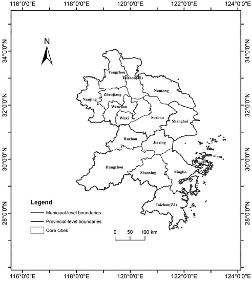 The Yangtze River Delta (YRD) is a region in eastern China whose core areas include 16 cities in Jiangsu Province, Zhejiang Province, and Shanghai Municipality (Figure 1). It is known for its strategic location on the coast, fertile land, and thriving economy. However, due to the expansion of the construction scope and the vicissitude of the region caused by the flow of resources, the heterogeneity in the YRD region has become increasingly prominent, showing the characteristics and evolution patterns of integrated development between urban and rural areas at various stages.