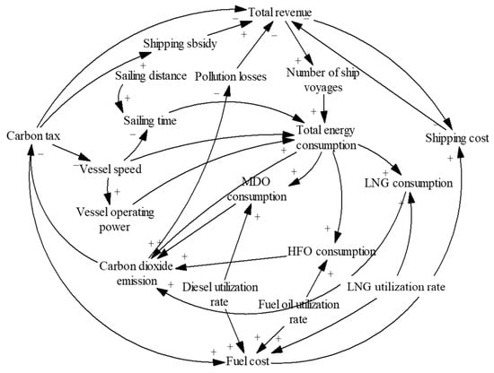 | R6 | Carbon tax→Vessel speed→Vessel operating power→Total energy consumption→Carbon dioxide emission |