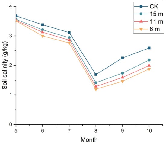 The dynamic fluctuations in soil salinity levels are depicted in Figure 4.