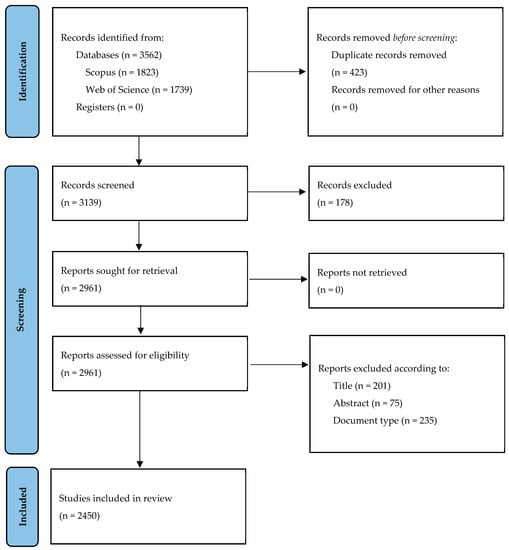 To achieve the goals set above, the present investigation was designed as a quantitative study using secondary sources of information and a bibliometric analysis to analyse the scientific activity found in the literature. In addition, quality criteria were established in accordance with the preferred reporting items for systematic reviews and meta-analyses (PRISMA) 2020 statement.