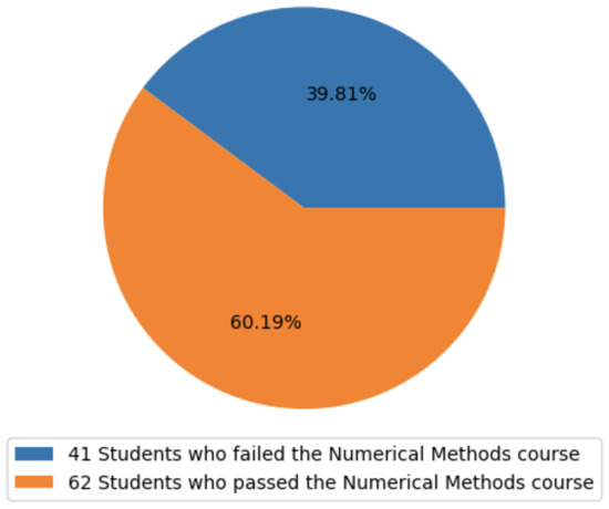 To achieve the goal of this study, which involved conceptualizing an intelligent system for predicting the risk of students failing the numerical methods course, we employed machine learning techniques. In this pursuit, we extended the dataset used in [6] by conducting a survey among students pursuing a bachelor’s degree in systems engineering at the University of Córdoba in Colombia, a public university. The students’ provided data were anonymized to ensure their privacy, and only their grades were considered, omitting any personal identifiers, such as identification numbers, names, gender, and economic stratum.
