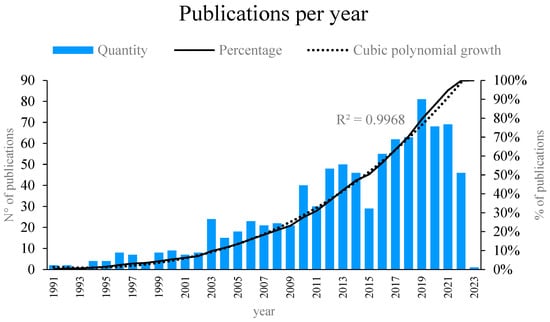 In this regard, bibliometric analysis can provide valuable insights into various aspects of the scientific literature, helping to identify the historical evolution of publications, the main research references, the major thematic groups in the literature, the thematic evolution of the scientific field, and the growing and emerging keywords in the literature. Furthermore, it can contribute to identifying the key elements of the research agenda for future investigations. By analyzing publication patterns and citation networks, researchers can gain a better understanding of the knowledge generation process and its impact on the scientific environment. Bibliometric techniques can be particularly useful in decision-making processes related to research and development plans and the selection of qualified leaders for projects based on quantitative evidence-based data in the scientific community [40]. For this purpose, the following questions were posed:
