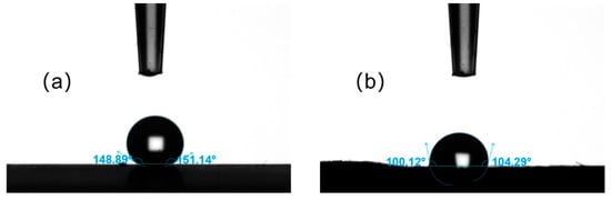 The contact angles of (a) surface with SHST and (b) surface with SHST.