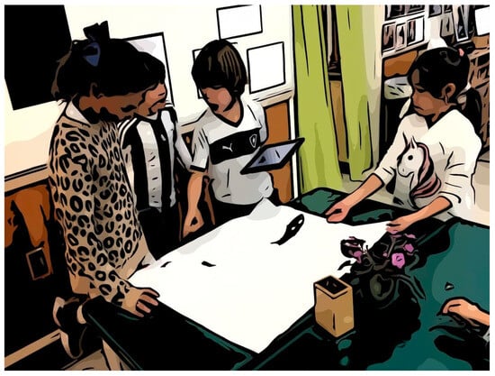 Drawing has been one of the most common school activities in elementary education, with children’s artwork frequently displayed on classroom walls [31,32]. The research on children’s drawings has not only found art essential in developing fine motor skills, creativity, expressing emotions, and storytelling [33,34], but as a method for assessing development and spatial skills [35]. However, in recent years, several scholars have warned educators and researchers of the danger of examining children’s drawings as isolated assessment tasks, because it can lead us to focus on what children cannot developmentally do, instead of understanding what they can do [29,36]. Children’s drawings, even in early scribbles, are a way for children to think through and communicate what they know about the world [35,37].