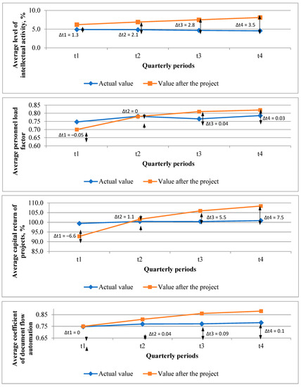Conducted preliminary studies [1,5,35,36] clearly proved that projects of smartization of business processes of enterprises have a positive effect not only on the target objects of smartization but also raise other elements of the management system to a higher level due to the activation of the intellectual activity of employees, increasing the responsibility of managers and intensifying control over carrying out separate technological operations and implementing typical business processes. From a managerial point of view, the results of the implementation of DTSP are apparent; they can be measured and controlled. However, deviations inevitably occur, some of which require further participation of the entities that developed and implemented the relevant projects. In this connection, the issue of evaluating the effectiveness of DTSP at the stage of their support after implementation and obtaining the planned result arises again.