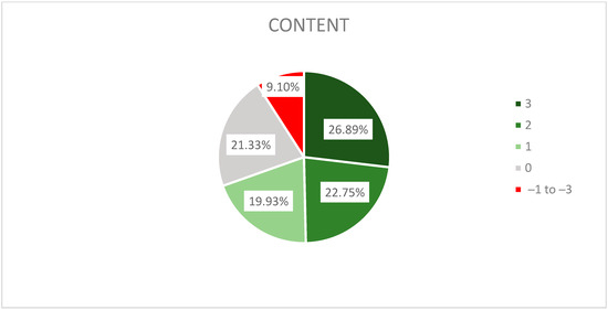 Table 3 presents the distinguishing statements for the content theme for Factors 1, 2, and 3. It shows both the Q-sort value (Q-SV) and the Z score for each of the 13 statements. We found that there were 11 statements statistically significant for Factor 1, 9 statements for Factor 2, and 10 statements for Factor 3. Thus, there were significant differences across the students’ perceptions regarding the extent to which they felt they had received content relevant to the SDG 8 topics within ABS’s UG curriculum. Factor 1 shows that the students perceived the SGD 8 topics positively (Q-SV from 1–3). Based on Factor 2, the students’ perceptions were mixed between positive perceptions and negative perceptions (Q-SV −1 to −3). However, Factor 3 represents the other extreme of Factor 1, as it indicates that students’ perceptions of the reception of SDG-8-related content are negative.