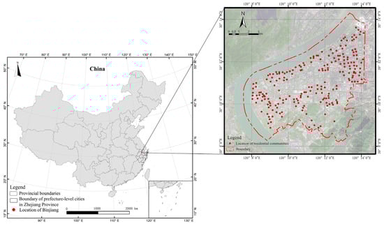 To address these problems, this study adopts the perspective of achieving urban renewal and enhancing urban resilience. We comprehensively integrate diverse data sources, including real estate websites, digital map platforms, remote sensing imagery, POI data, and land-use planning data, to develop an evaluation indicator system for residential living environment quality across five dimensions: residence and environment, transportation and communication, education and culture, lifestyle and leisure, and healthcare and well-being. This study takes Binjiang District of Hangzhou (Figure 1) as the research object and discusses the feasibility of using multiple data sources to evaluate the residential environment quality. The proposed research methodology holds substantial implications for analyzing the spatial distribution of living environment quality within cities and optimizing urban planning and development.