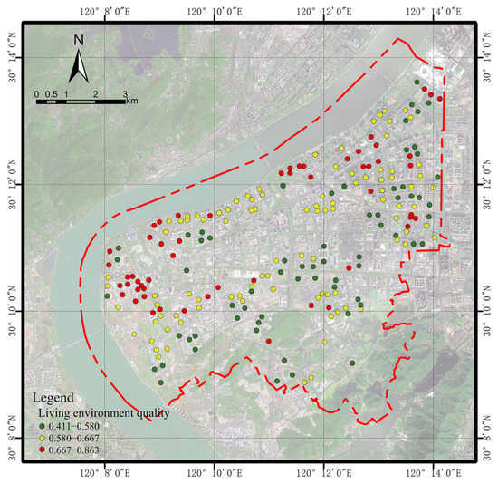 Distribution of residential living environment quality in Binjiang District.