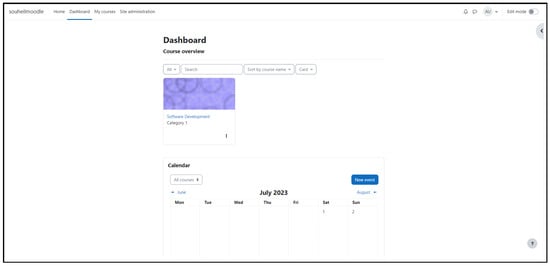 Figure 3) is a popular LMS introduced in 2002. It allows users to build and manage courses, track learner progress, and facilitate online education. Moodle is widely used by institutions in various industries. It offers several benefits, being open source, easy to use, flexible, compatible with different devices, allowing optional integration with other systems, and supporting collaborative learning [