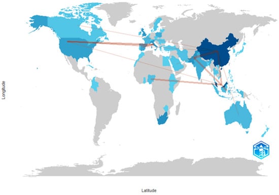 With the Bibliometrix R Package, it is possible to perform a descriptive and network analysis of a bibliographic data framework in order to reveal the social, conceptual, and intellectual structures as understood by Aria and Cuccurullo []. First, the analyses of the scholarly production of countries and their associated collaborative networks reveal how authors and countries interact with each other. Second, the conceptual structure is useful to identify the main themes and research field of a topic, e.g., via network analyses that evaluate the relationships between words or concepts, such as the thematic map. Finally, the intellectual structure includes the relationships between authors and their impact on the scientific community, e.g., via the analysis of the co-citation network. To obtain a comprehensive overview of the topics, the analytical steps carried out in this study included some performance analyses to assess the impact of research activity, while the others were based on science mapping to visualize the results []. The specific steps are listed below: