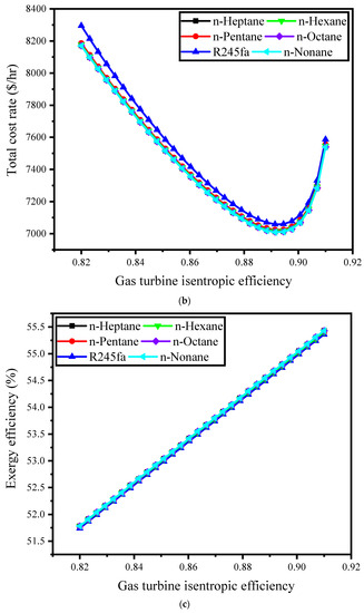 - Ahmadi, B.; Golneshan, A.A.; Arasteh, H.; Karimipour, A.; Bach, Q.-V. Energy and Exergy Analysis and Optimization of a Gas Turbine Cycle Coupled by a Bottoming Organic Rankine Cycle. J. Therm. Anal. Calorim. 2020, 141, 495–510. [Google Scholar] [CrossRef]