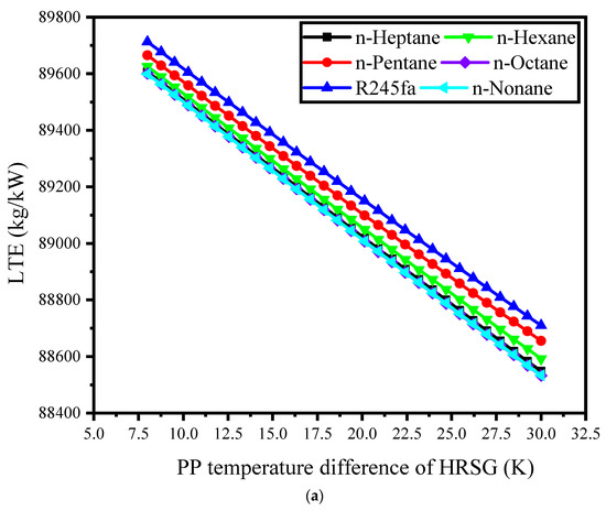 The levelized total emission (LTE) is utilized to determine the ratio of the total mass flow rate of greenhouse gases during the lifetime of the plant to the total net produced power.
