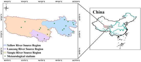 The TRHR is located in southern Qinghai Province, China. It is located between the 31°39′ and 36°12′ N latitude lines and the 89°45′ and 102°23′ E longitude lines, with a total area of 363,000 square kilometers and an average elevation of 3500–4800 m. It is considered as the roof of the world and the hinterland of the Qinghai-Tibet Plateau. The TRHR is one of the areas in China with the most concentrated distribution of glaciers. Snow-capped mountains, glaciers and rivers are widely distributed, and lakes and swamps are numerous; in addition, this region has the highest elevation, the largest area and the most abundant wetland across the world. The climate belongs to the Qinghai-Tibet Plateau climate system, a typical plateau continental climate characterized by alternating hot and cold seasons, distinct dry and wet seasons, small annual temperature differences, large daily temperature differences, long hours of sunshine, strong radiation, and a lack of four seasons. The study area was shown in Figure 1.