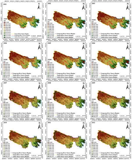 In view of the low spatial resolution of the currently used SIF data, many details cannot be displayed, let alone detailed analysis for specific regions. In addition, the altitude difference in TRHR is relatively large, and the human activities in the eastern and western regions are greatly different. These factors should be considered. In the next step, SIF data with higher spatial resolution will be selected to further study SIF changes and factors such as elevation and human activities should be considered when analyzing changes in SIF.