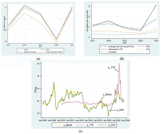 Figure 1 and Figure 2 suggests that the year 2020 experienced the lowest energy prices for both oil and natural gas due to the declines of energy demand induced by the shock of the COVID-19 pandemic. Furthermore, the energy price fluctuations mainly adversely affect the European counties without a resilient economy. Our conclusion is mostly consistent with Boldea et al. [34], who observed that former communist European countries are more vulnerable to oil price volatility.