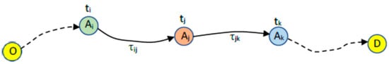 Sequence of activities. O, origin; D, destination; Am, activities.