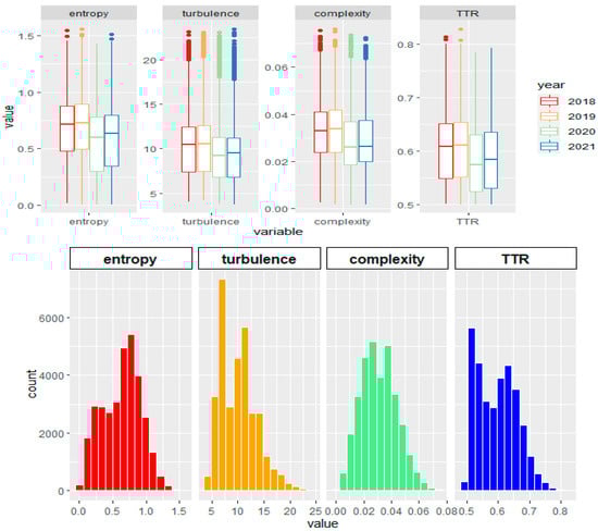 Firstly, we conducted a basic descriptive analysis of fragmentation indicators for activity sequences of sample units in 2018 to 2021 EMEF travel surveys, including the following: