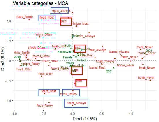 Modal use frequency and residential area parameters have a remarkable association that will be addressed in future research. The built environment also seems to play a critical role.