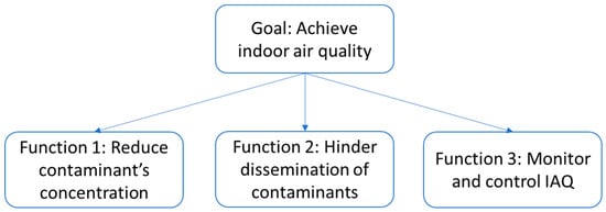 To develop the integrative framework, we perform functional decomposition by first reflecting the functions of two traditional IAQ controls: ventilation and pressure differential (or gradient) [11,13]. In general, the function of ventilation could be interpreted as supplying clean air and pressure gradients to control the flow of indoor air contaminants. These describe two distinct functions of IAQ controls, which can be further broken down into specific controls or interventions (e.g., what specific IAQ controls are intended to clean air).