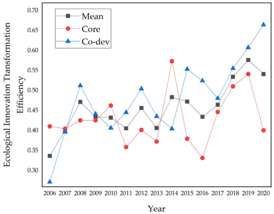 3.1. The Measurement of the Ecological Innovation Efficiency from 2006–2020
