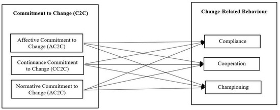 A study on 498 respondents who underwent change in their organisations also revealed that employees’ affective commitment to change greatly influenced their support for change [41]. Even though all the dimensions of change-related behaviour—championing, cooperation, and compliance—were mentioned in the study, these constructs were measured unidimensionally. The results did not specify which of the three change-related behaviours were most affected by affective commitment to change.