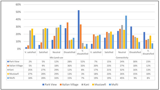 The percentage of the satisfaction for mixed land-use and connectivity indicators.