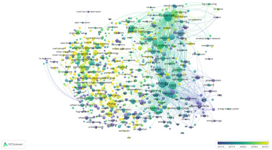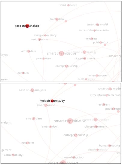 The bibliometric synopsis is presented via an intricate visualization in this paper. An analysis of research development trends in smart cities and sustainability was carried out for publications up to 2023. The three main keywords, “smart city”, “sustainability”, and “case study”, were combined when finding text-data-based publications. We collected data by performing searches via the Crossref, Google Scholar, OpenAlex, Pub Med, and Semantic Scholar databases. These word queries were investigated within the article title, abstract, and stated keywords by the authors. We found thousands of papers that matched all our determined queries, and had been published within the last 10 years (since 2013). If we look at the network visualization in Figure 3, specifically for the term “Korea”, we can only see connections to competitiveness, republic, association, and one area in the country, Songdo. There is no study yet that connects smart city subjects to sustainability for the city of Suwon. If we take a further look at the terms similar to “case study”, such as “case study analysis”, “multiple case study”, “case study area”, and “real case study”, we cannot find any studies that combine each of these terms for a specific, observed city (Figure 4). There has likewise been no discussion of the city of Suwon and its smart city policies. There was only one term, “study area”, that connected China and land (Figure 5). We looked deeper by using the name of a city, country, or even continent to investigate their connection to sustainable smart city analyses. Via this bibliometric analysis using the VosViewer software version 1.6.19, we found that there have not been any previous studies with our same idea. In Figure 6, we mapped the publications’ distribution years and found that the most relevant papers were published quite recently, from 2017 to 2019.