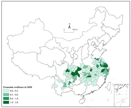 40]. The ratio of the output value in the tertiary industry to that of the secondary industry was used to calculate the industrial structure upgrade. In addition, considering factors that may affect economic resilience, some other variables were chosen: the per capita savings of urban residents (Save), measured by the year-end deposit balance of financial institutions over the urban population; the size of the urban market (Size), measured by the retail sales of consumer goods over GDP; the dependence on foreign capital (Open), measured by the amount of urban FDI over GDP; financial market activity (Finance), measured by the deposits and loans of financial institutions over GDP; the ability of the government to distribute resources (Government), measured by government expenditure over GDP; the level of urban infrastructure (Infrastructure), measured by highway mileage over urban area; and the urbanization process (Urban), measured by the urban population over the total population.