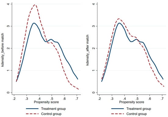 This study performs PSM on the data to reduce selection bias between the treatment and control groups, and then regression is performed on the matched data to estimate the accurate effect. To test whether the control variables have an impact on the analysis results, this study uses methods of not adding and adding control variables (the same as in