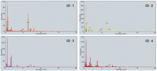 EDS images of N- and P-bearing nanoparticles (ID:1–4).