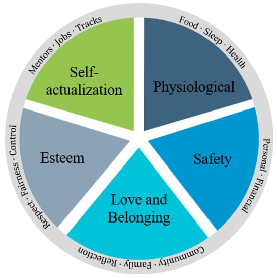 - Andrew, J.H.; Daniel, N.R.; Jason, F.; Christopher, C.S.; Grace, C.H. Adapting Maslow’s Hierarchy of Needs as a Framework for Resident Wellness. Teach. Learn. Med. 2019, 31, 109–118. [Google Scholar]