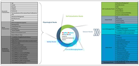 Therefore, using a qualitative and quantitative integrated analysis in this study, we empirically present a comprehensive framework that connects the influencing factors of residential satisfaction with a modified version of Maslow’s human needs framework, aiming to fill the gap between them.