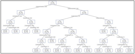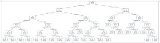 A decision tree is a machine-learning algorithm used for classification, regression, or prediction []. The main attribute of decision trees is that they recursively split sets of data or nodes based on questions regarding the value of independent variables. The recursive process of splitting nodes forms a tree-shaped structure (Figure 5).