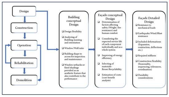 - Moghtadernejad, S.; Mirza, M.S.; Chouinard, L.E. Façade design stages: Issues and considerations. J. Archit. Eng. 2019, 25, 04018033. [Google Scholar] [CrossRef]