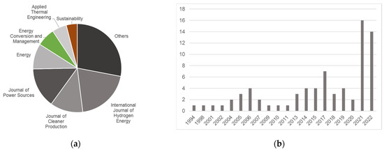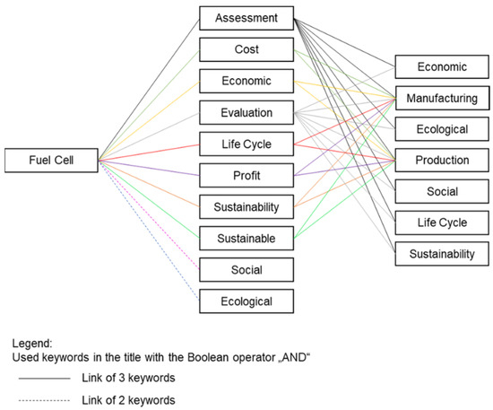 - With regard to methodological limitations, it should be noted that the results of the literature research are strongly influenced by the databases used and, above all, the keywords applied. To obtain a general overview of the sustainability assessment of fuel cells, the keywords were kept correspondingly general and broad. Since the results found are very heterogeneous, it could be advisable to adapt the search to a more specific question, such as by limiting it to a fuel cell type (e.g., PEMFC only) or a specific system application (e.g., vehicles only). Accordingly, the search terms would have to be adapted more specifically to the new question. In addition, a reduction in the keywords used would shorten the results found as well, and a variation in the keywords used would have led to different results (e.g., instead of the term ecological, the term environmental could have been used). Furthermore, the studies found may vary depending on which databases are used for literature research. Therefore, other databases, such as Google Scholar, could have been used. Aside from the search terms and databases used, the inclusion and exclusion criteria also limit the studies analyzed and influence the results achieved. In this case, 75 papers were selected for an in-depth reading from the 86 papers based on whether they have a VHB ranking of at least C and/or an H-index of at least 80. If one of these inclusion or exclusion criteria were changed (e.g., an H-index of at least 50 is sufficient), the number of papers included in the study would vary accordingly (here, the number of papers would rise).