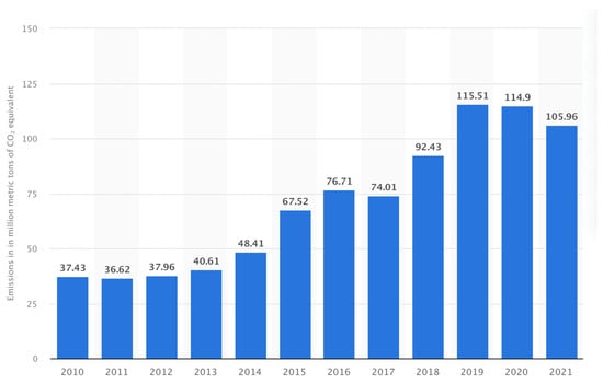 - Nguyen, M.N. Annual CO2 Emissions of Vietnam from 2010 to 2021. Statista. 2021. Available online: https://www.statista.com/statistics/1195874/vietnam-annual-co2-emissions/ (accessed on 16 September 2023).