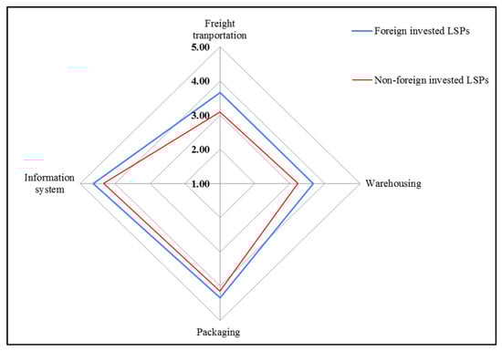 RQ3. How do the measured applications of Vietnam and foreign-invested LSPs differ from each other?