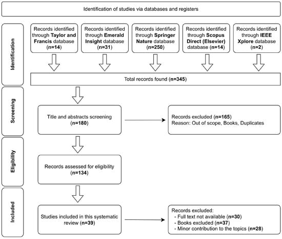- The PRISMA method resulted in 345 total records, and with the screening process and evaluation for eligibility, and at the end of the “funneling” process, 39 papers were included in this SLR. The process also revealed a growing trend in publications in this field, since almost 50% of publications were in the last year within the whole 5-year period.
