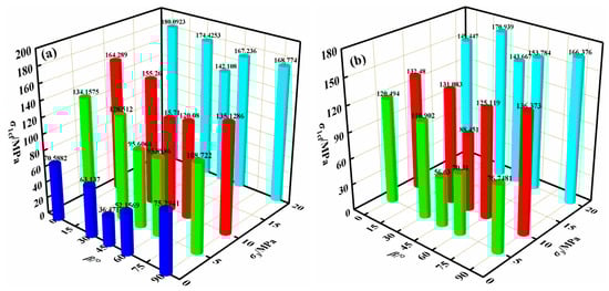 Coupling Equations (16)–(18), the modified H-B strength criteria under CTLT could be obtained, and the specific expression was as follows: