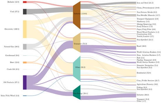 Understanding these power flows is a fundamental step before proposing any power transition scenario. We could interpret the IEA definitions in a more intuitive way as framed by Gates [], who refers to the industry sector as “how we make things” and the transport sector as “how we move things”. The “others” sector can be interpreted as miscellaneous, while non-energy is the use of energy commodities as raw materials.