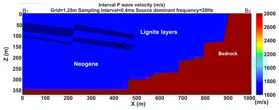 P wave velocity model (NE-SW), which corresponds to geological section B1–B2 (Figure 2).