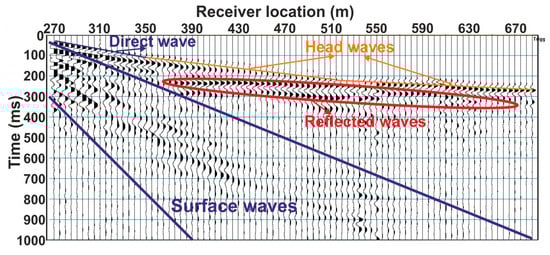 The shallow seismic reflection method has gained significant attention in recent decades [2,3,4,5,6,7,8,9,10]. Even though the seismic reflection method is commonly applied to oil and gas exploration, as well as to other relatively deep prospecting applications (more than 1 km depth), the shallow seismic reflection has been successfully utilized for coal surveys at prospecting depths less than 300 m [2,3] and for bedrock imaging [5], as well as for urban planning constructions [9]. Additionally, it has been integrated with other near-surface geophysical methods for the delineation of shallow targets, such as for imaging the near-surface sedimentary formations of hydrogeological interest at depths less than 40 m [8].